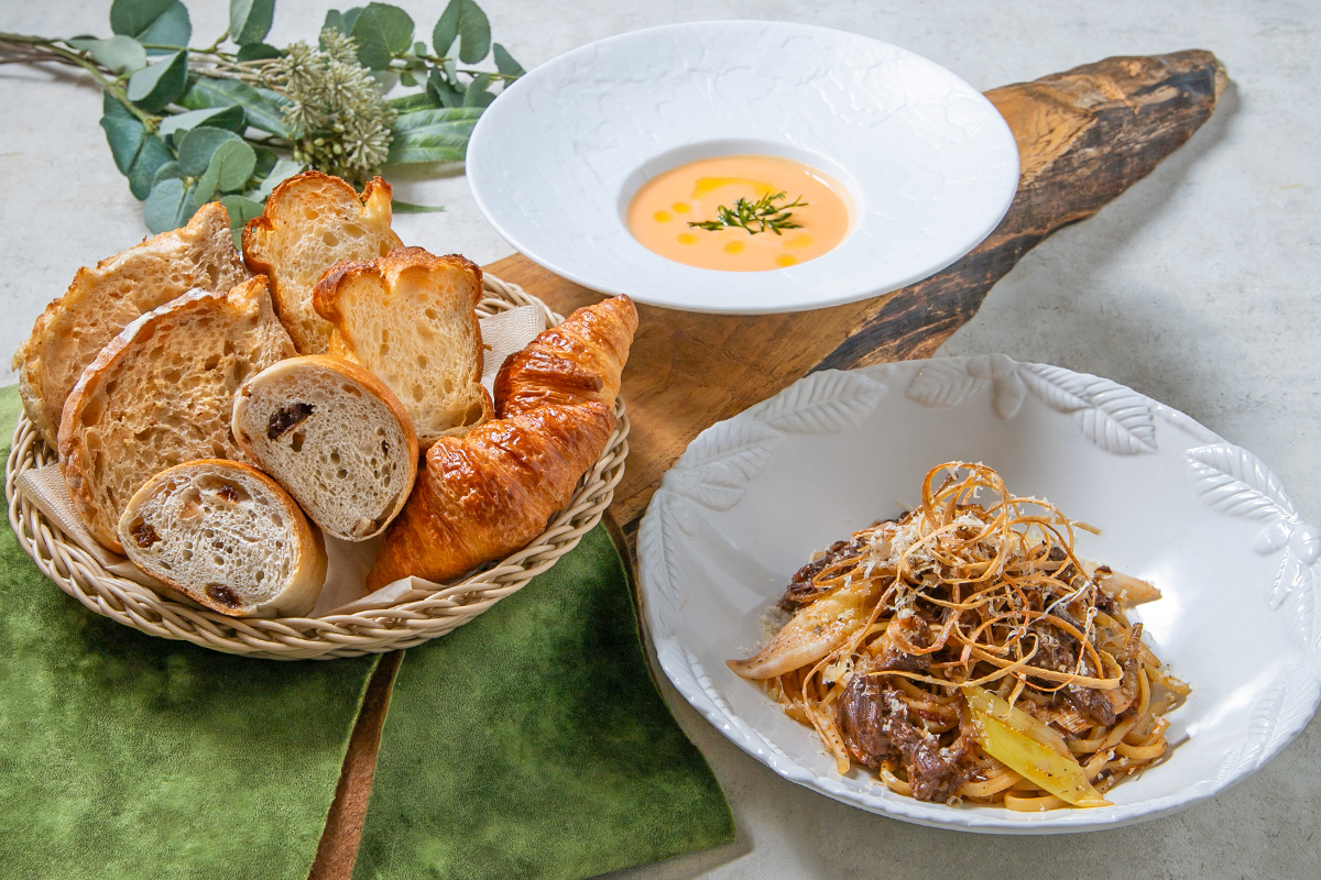西畠清順氏プロデュースのそらガーデンを眺めながら、店内製麺の生パスタやナチュールワインとご一緒に記念日や、デートの特別なひとときをお愉しみください。