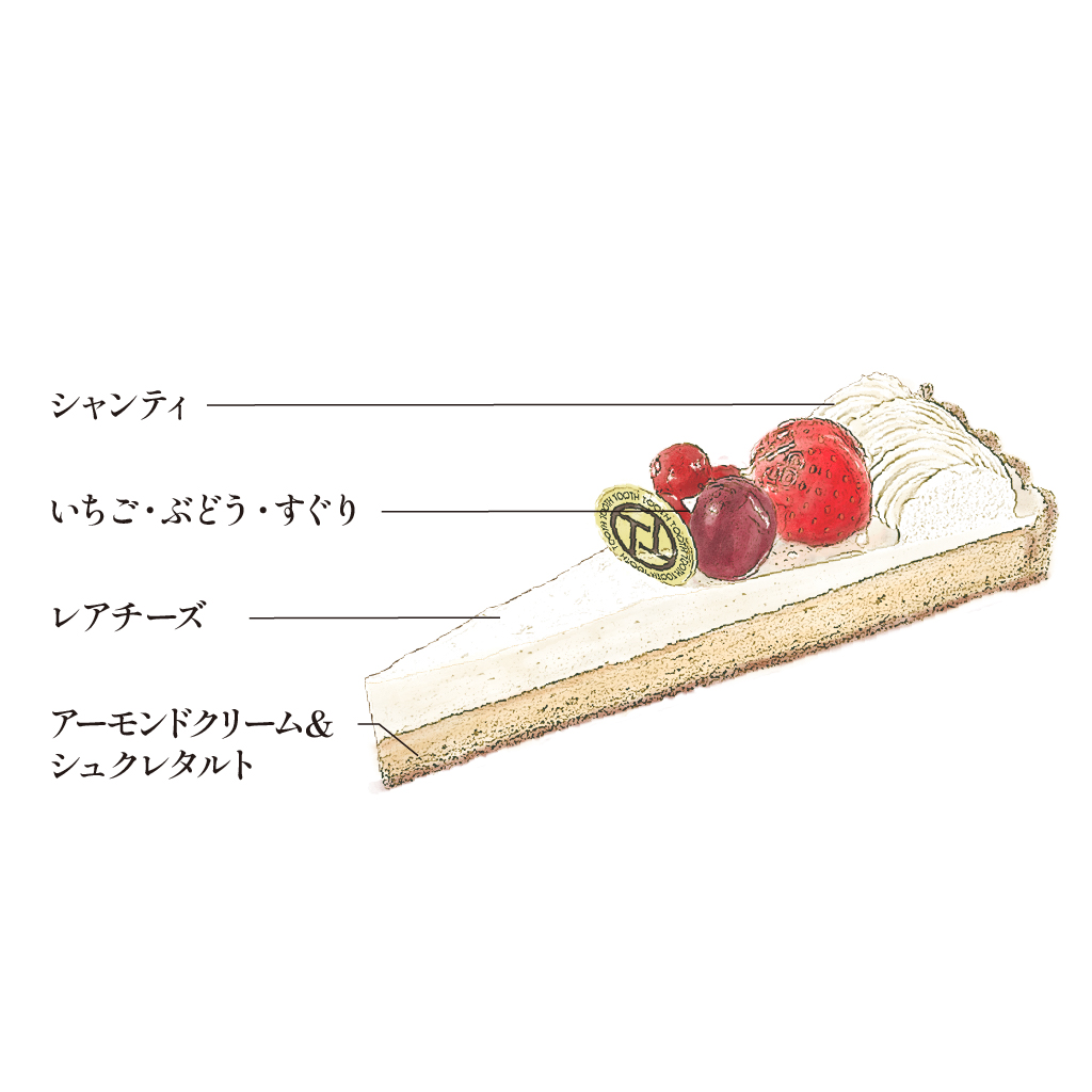 なめらかな北海道産クリームチーズとサワークリームの爽やかさが調和するレアチーズタルトに、旬のフルーツを添えました。