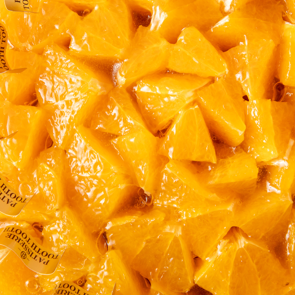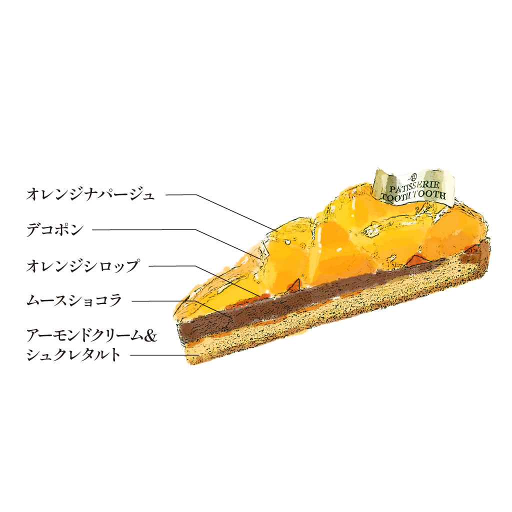 デコポンの甘くてフルーティーな味わいと、ビターで奥深いショコラをあわせました。柑橘とショコラの豊かなマリージュが上品なタルトです。