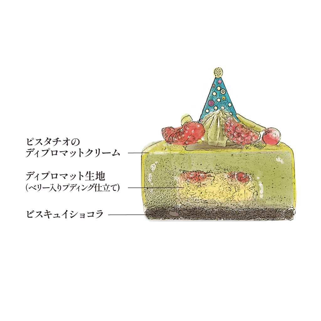 ピスタチオチョコレートの中は、濃厚でなめらかなピスタチオクリームとディプロマット。 ベリーのほのかな酸味や、芳醇なビスキュイショコラがコク深いピスタチオの風味を絶妙に引き立てます。