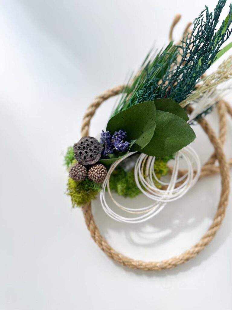 まもなく迎える新年の準備として、カタチから創る世界にたったひとつだけのしめ縄作り。ラッピングをしてお持ち帰りいただきますので、ギフトにもおすすめです。