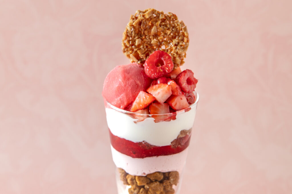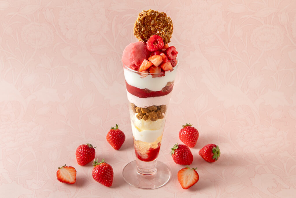 瑞々しいいちごに、ほのかに香るエルダーフラワーを合わせた春のパフェ。