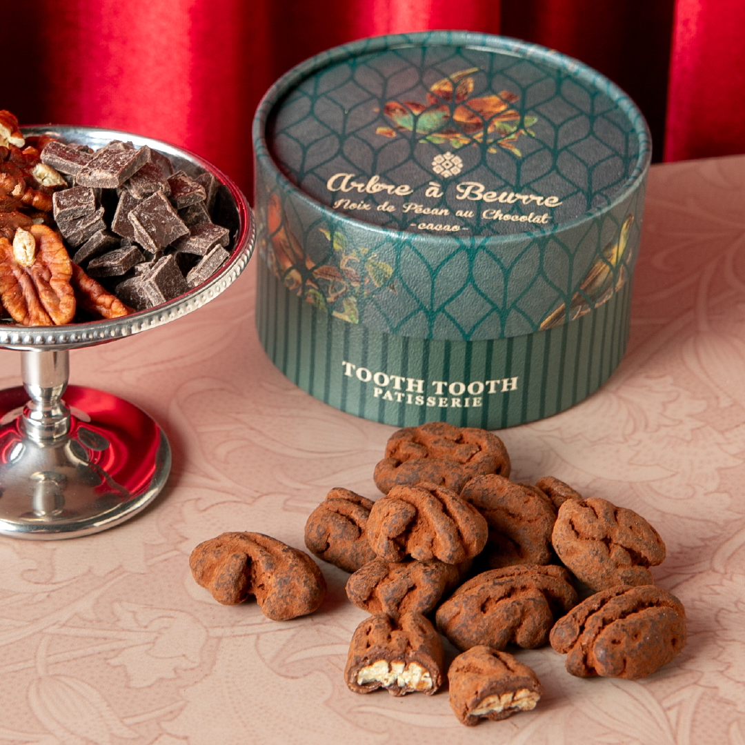 ローストした香ばしいペカンナッツをミルクチョコとココアパウダーで包み込みました。
