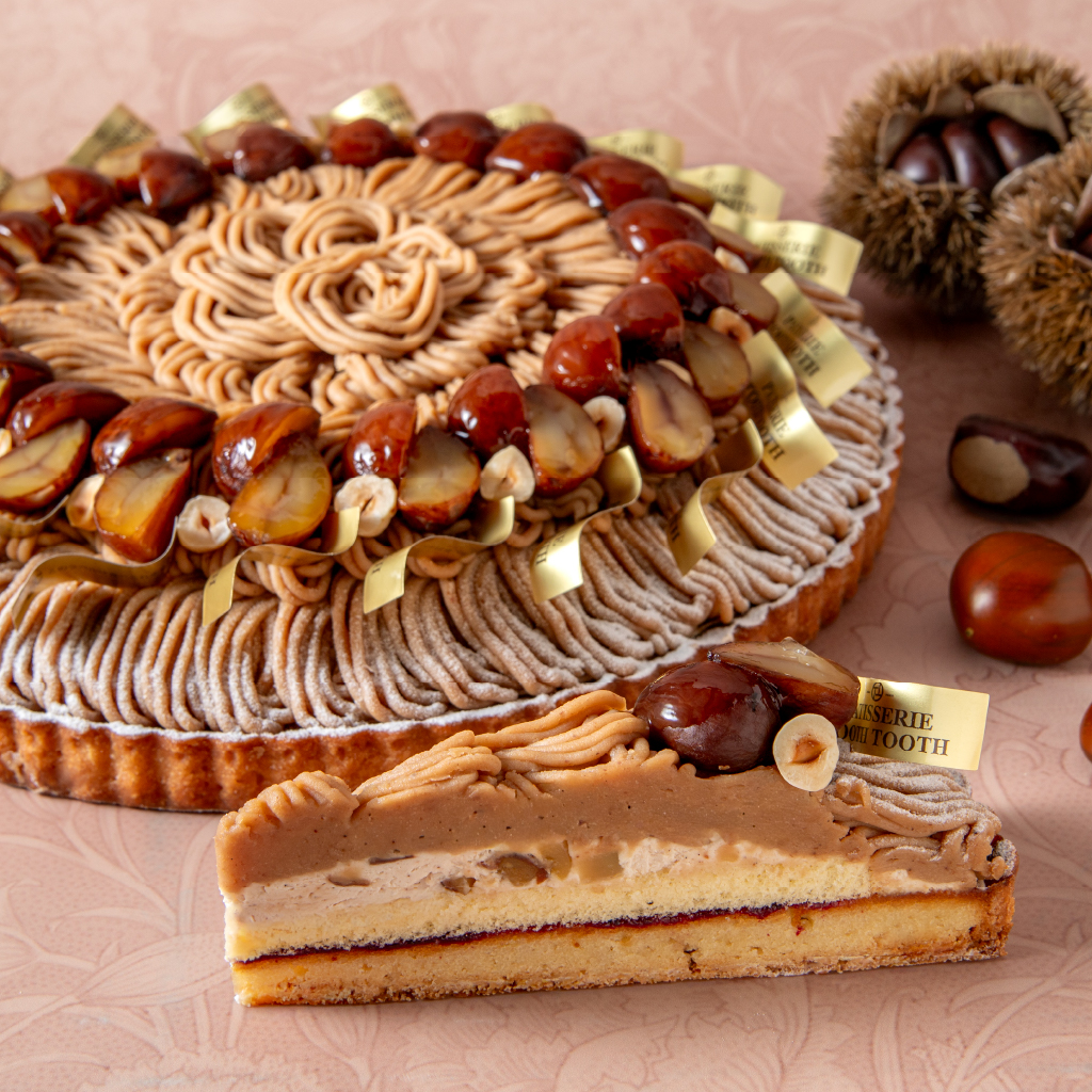 和栗と洋栗をあわせたモンブランクリームを、栗の食感を引き出したマロンシャンティ、カシスコンフィチュール、香ばしいタルトに合わせました。口の中に広がる栗の豊かな風味をぜひお楽しみください。