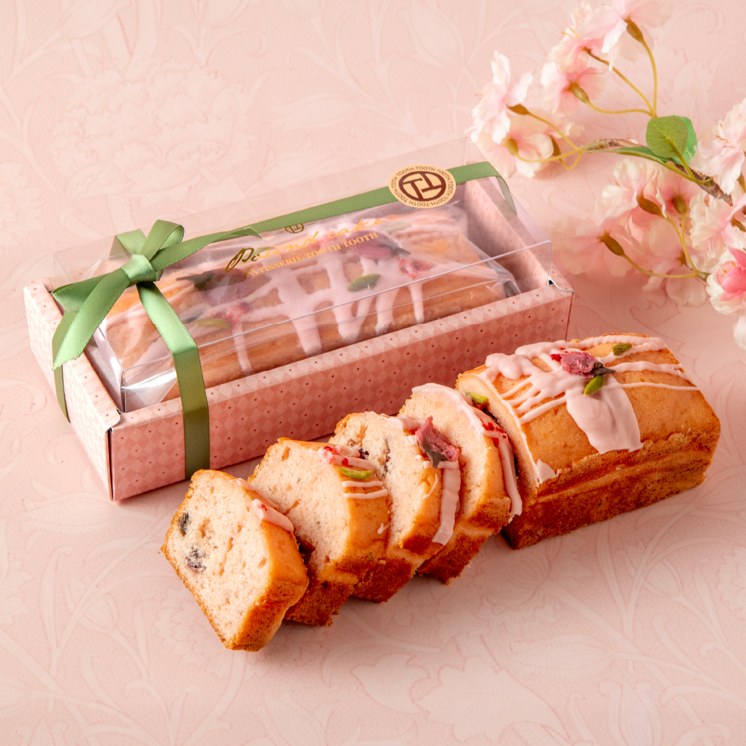 さくらの風味がほのかに香る、やさしい味わいのパウンドケイク。