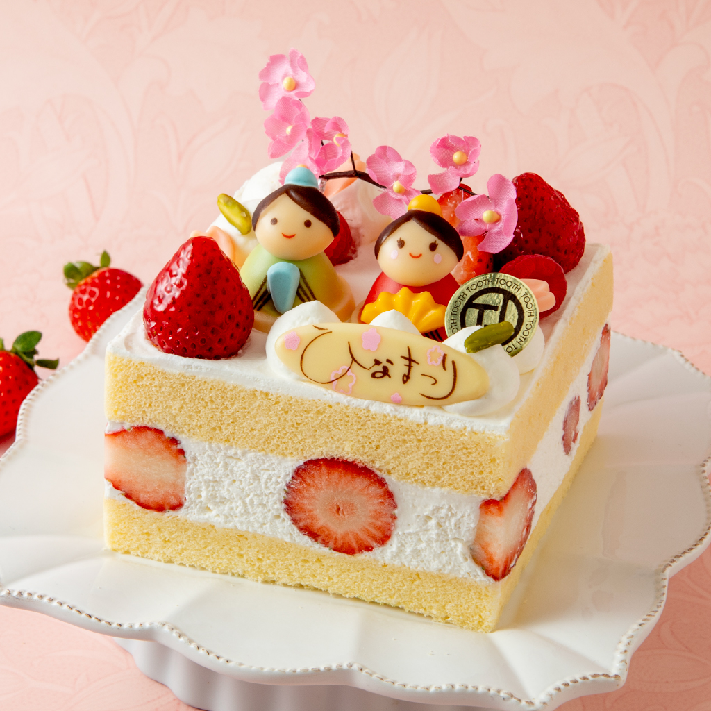 にっこりと微笑むお内裏様とお雛様をのせた、ひなまつりシーズン限定のホールケーキ。 しっとりとしたジェノワーズ生地に、ほどよい甘さの生クリームと甘酸っぱいいちごをサンドしました。 【お渡し期間2/28~3/3】※ご検討の際は店舗へお問い合わせください