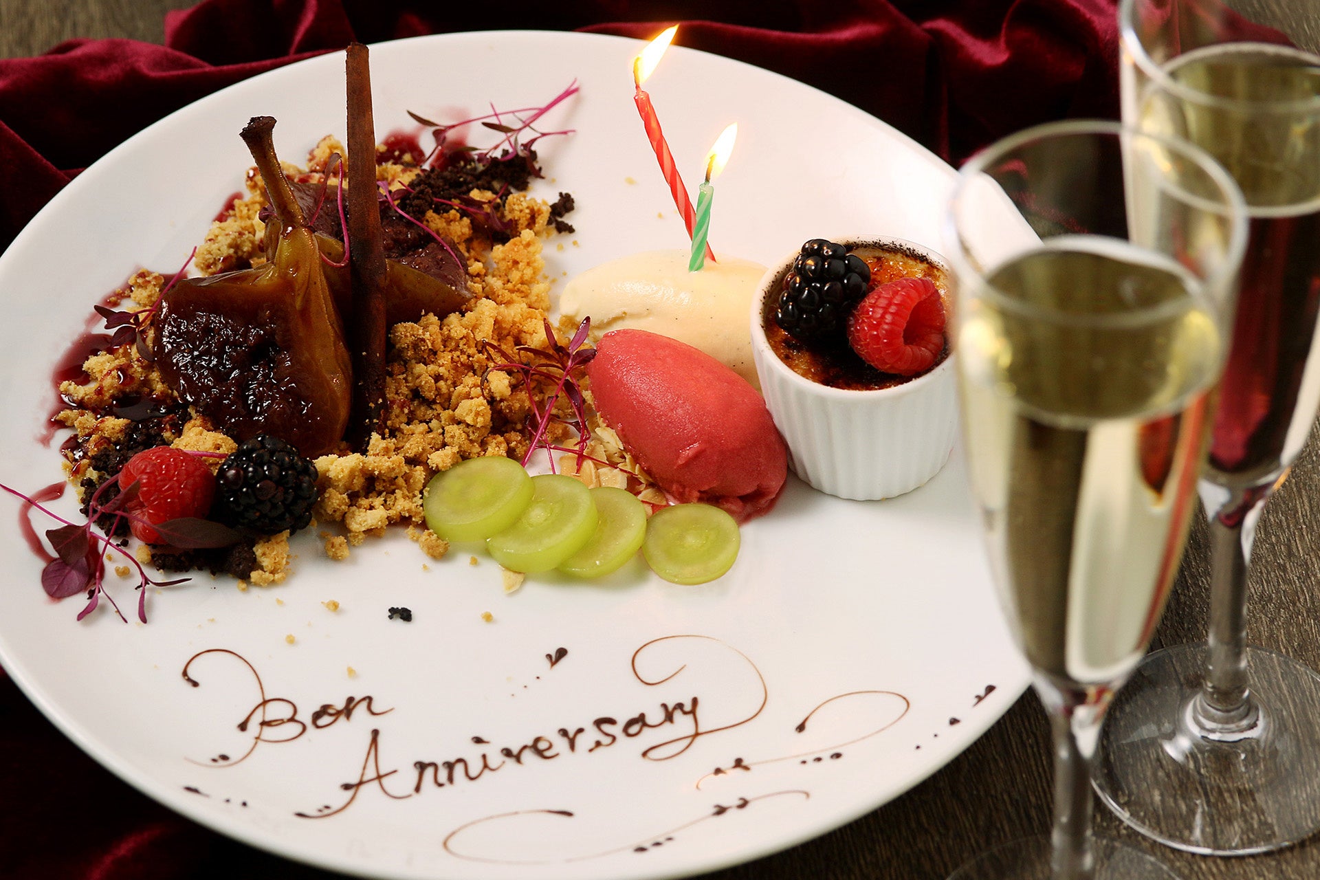 お誕生日や記念日のお祝いに、オリジナルデザートプレートもご用意可能です。